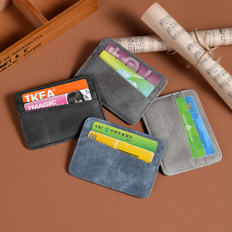 牛仔皮革男女士卡包簡約一片式多卡位證件收納卡夾迷你隨身零錢包