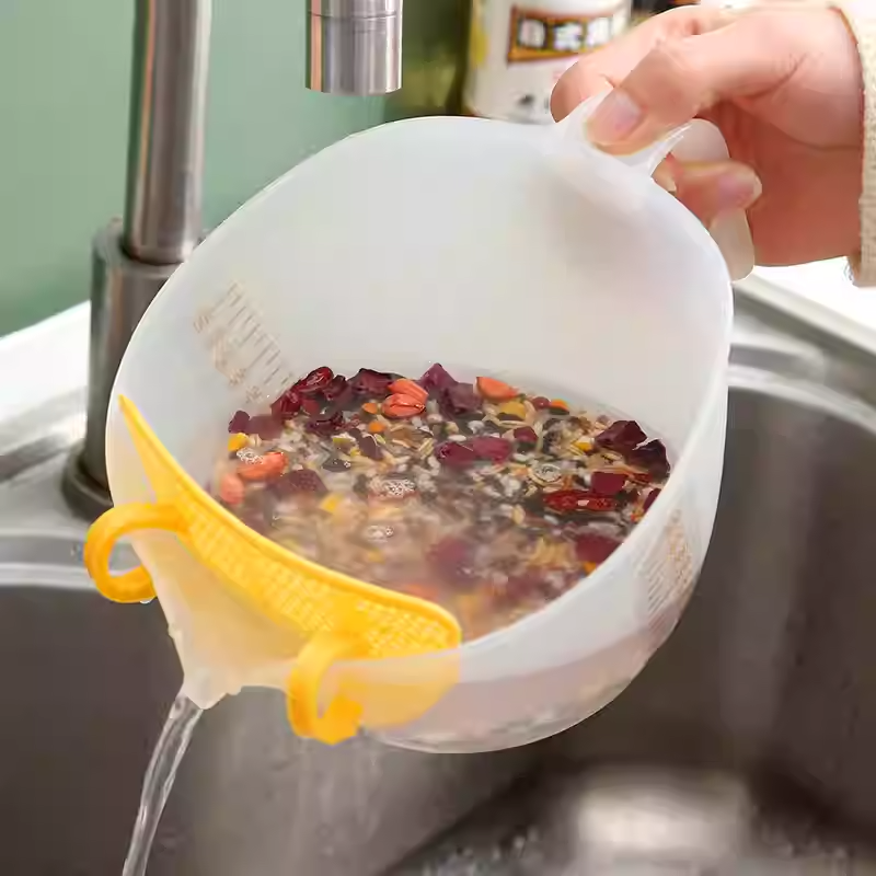 過濾碗帶刻度量杯淘米神器食品級多功能雞蛋液攪拌烘焙濾勺漏勺