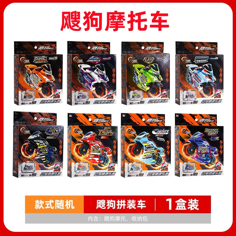 正版愛動颼狗摩托車拼裝搜狗慣性軌道車迷你加速男孩玩具套裝禮物
