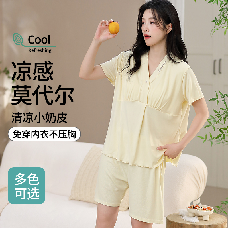 帶胸墊莫代爾月子服夏季薄款產后7月份6哺乳孕婦睡衣夏天短袖產婦