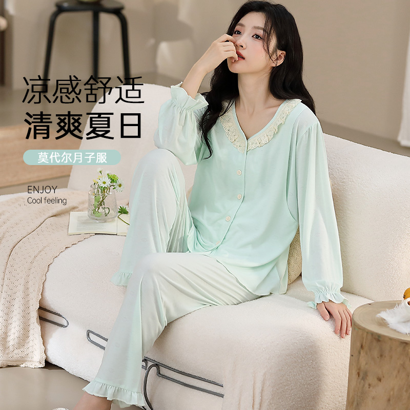 家時光莫代爾冰絲月子服夏季薄款透氣吸汗孕婦睡衣哺乳產后家居服