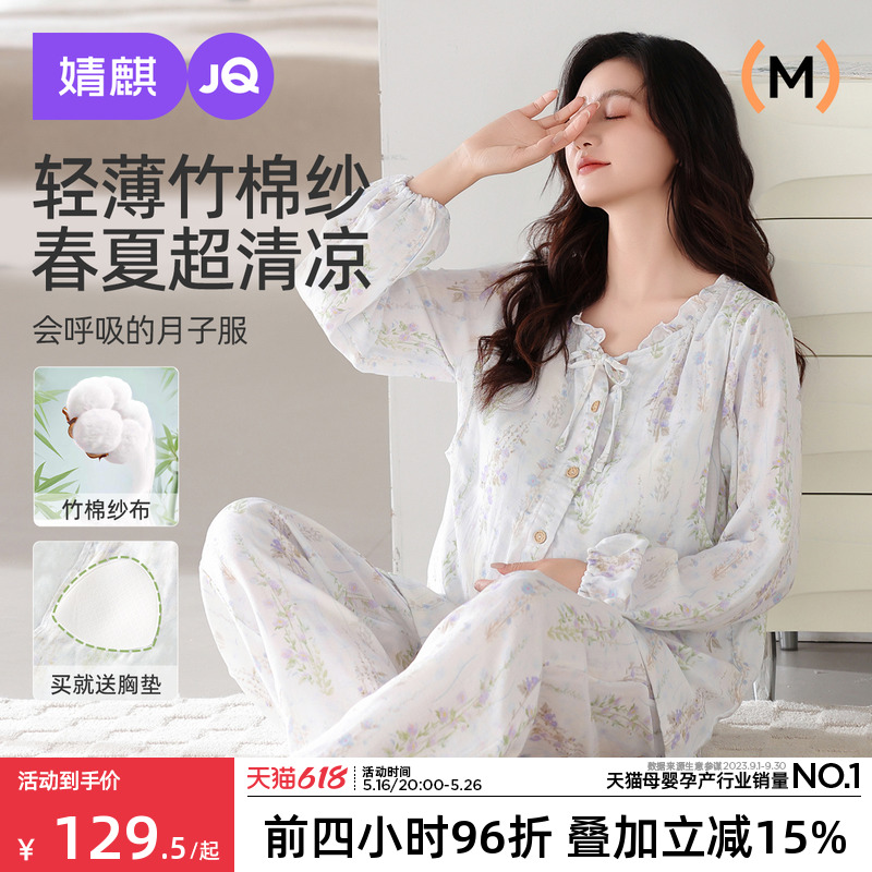 婧麒送胸墊月子服夏季竹棉5月份產后純薄孕婦睡衣哺乳待產家居服