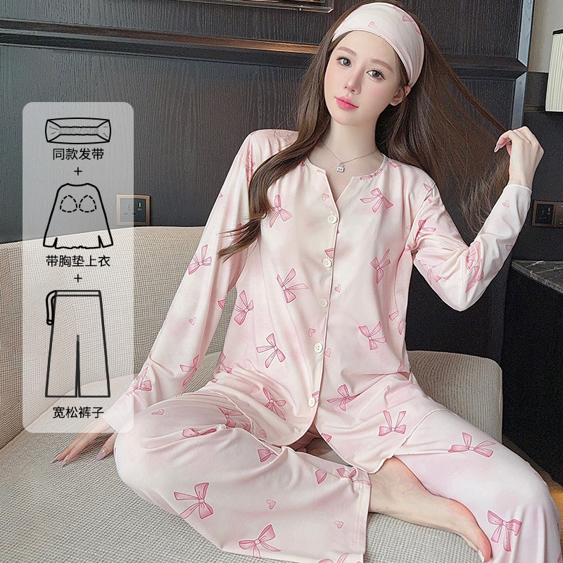 可拆卸胸墊莫代爾月子服女夏季薄款十月份孕婦哺乳睡衣產婦秋冬天