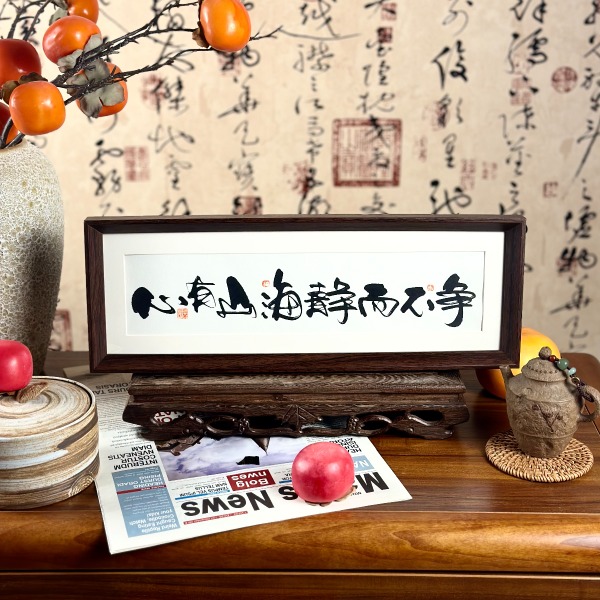 墨來手創《心有山海靜而不爭》原創書法字畫手工擺件中式茶室臥室