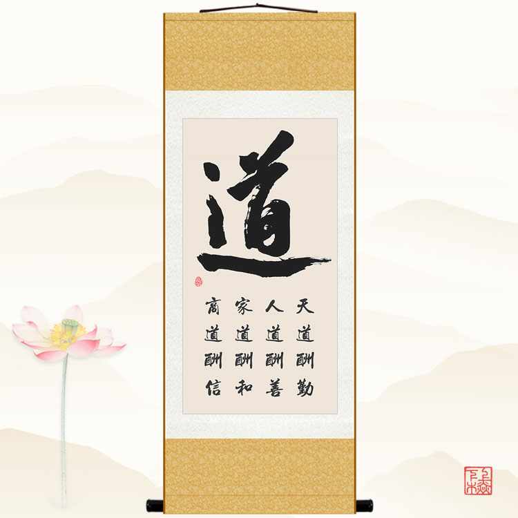 道字書法卷軸畫 天道酬勤商道酬信書房裝飾畫 絲綢畫掛畫定制訂做