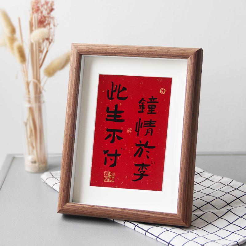 此生不付鐘情于李 姓氏諧音梗情侶訂婚擺臺書法相框定制禮物