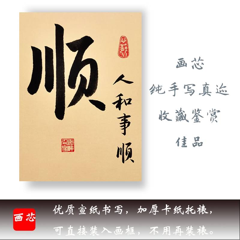 辦公室字畫書法順字人和事順手寫真跡字畫書桌創意擺件客廳掛畫