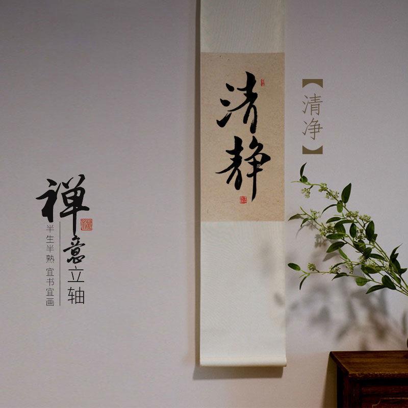 常樂吃茶卷軸畫手寫書法禪意中式裝飾掛畫茶室客廳玄關長條字畫