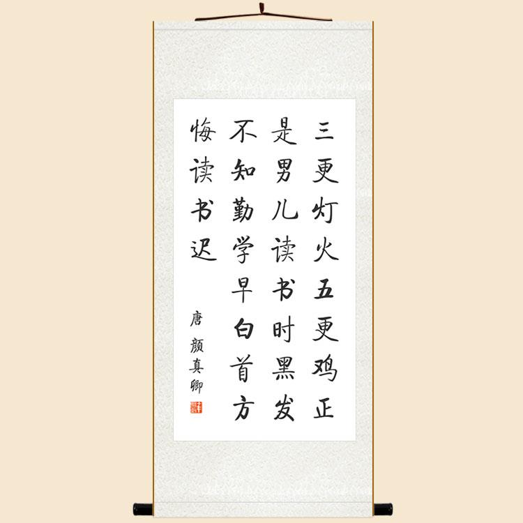 三更燈火五更雞書法掛畫 顏真卿勸學詩卷軸畫 玄關書房客廳裝飾畫