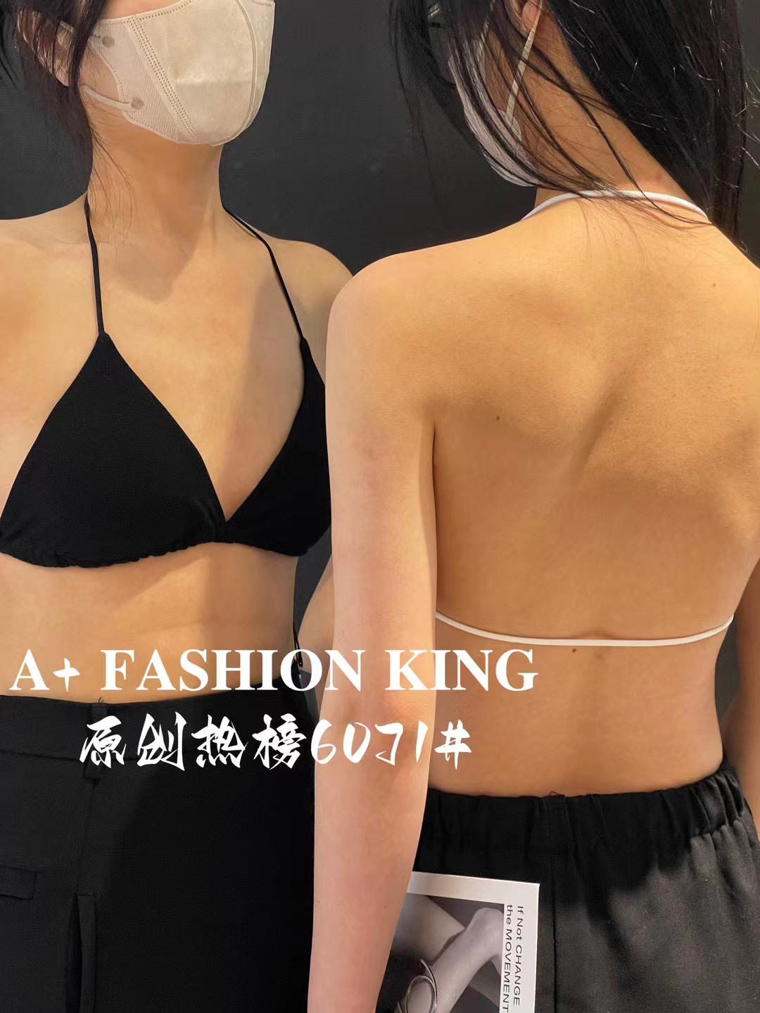 A+爆款夏季薄款三角杯撞色設計掛脖細帶比基尼款性感美背文胸6071