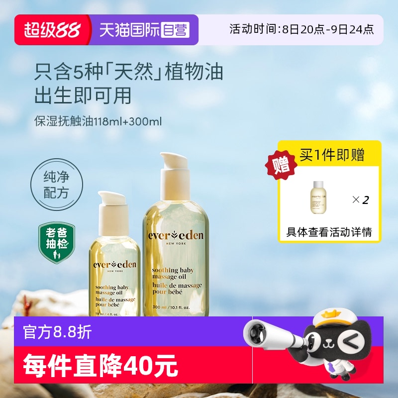 【自營】Evereden嬰兒無添加保濕撫觸按摩油超值組合118ml+300ml