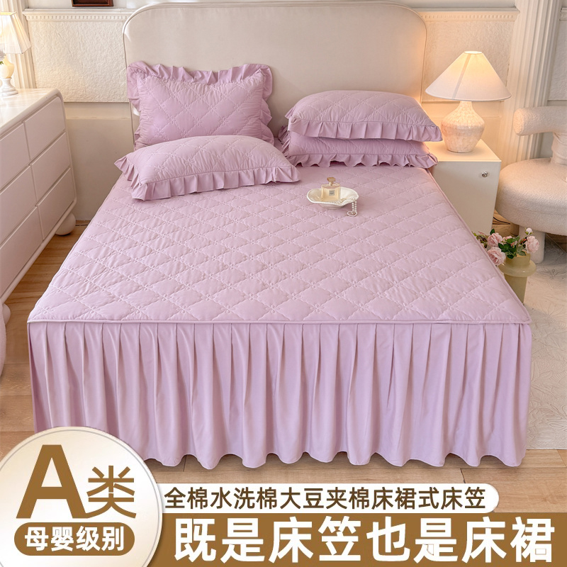 a類全棉夾棉床裙單件加厚純棉高端遮丑床罩防滑四季通用2025新款