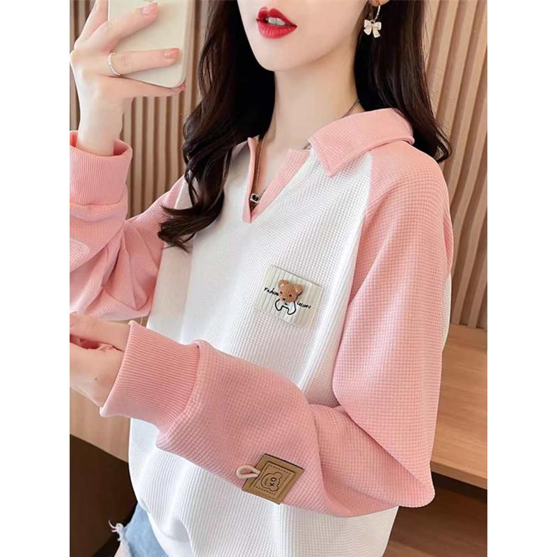 polo領哺乳衛衣女外出春秋季新款寬松長袖產后設計感時尚喂奶上衣