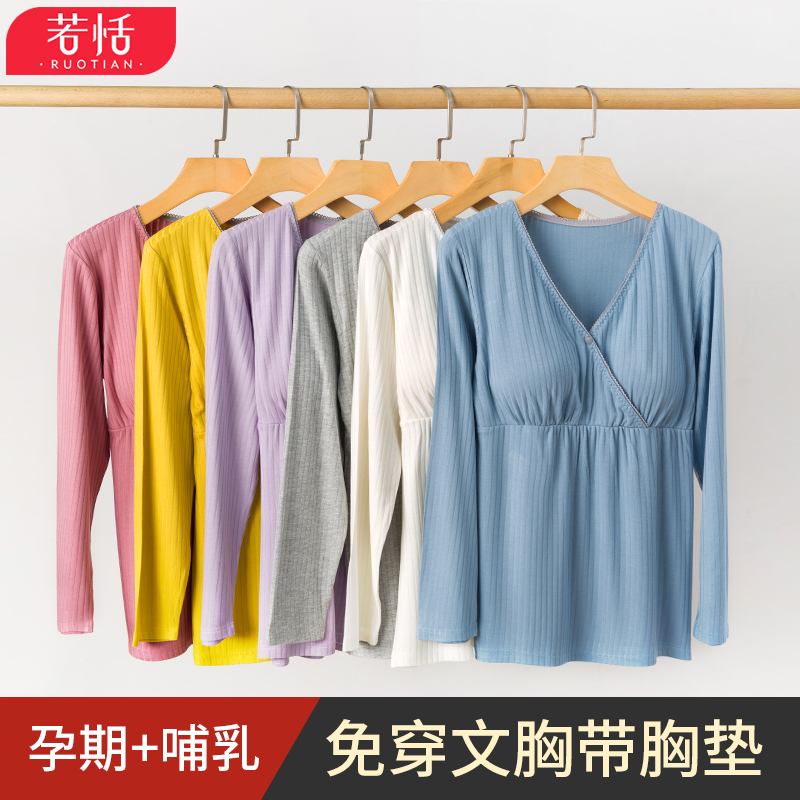 產后哺乳上衣外出月子服睡u衣喂奶孕婦秋衣打底衫春秋冬季薄款夏