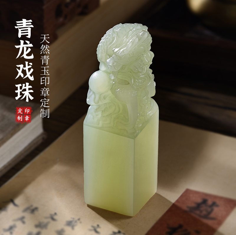 姓名印章定制青龍戲珠方章天然青玉石篆刻書法字畫藏書私人章印章