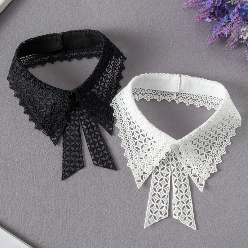 針織刺繡系帶服裝假領子 秋冬毛衣連衣裙童裝綁帶小披肩領口領飾