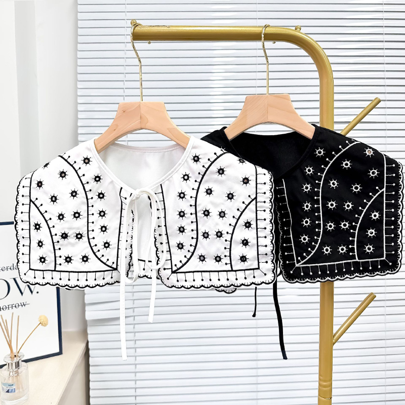 假領子刺繡黑白毛衣衛衣海軍學院風裝飾娃娃領方形領花外搭小披肩