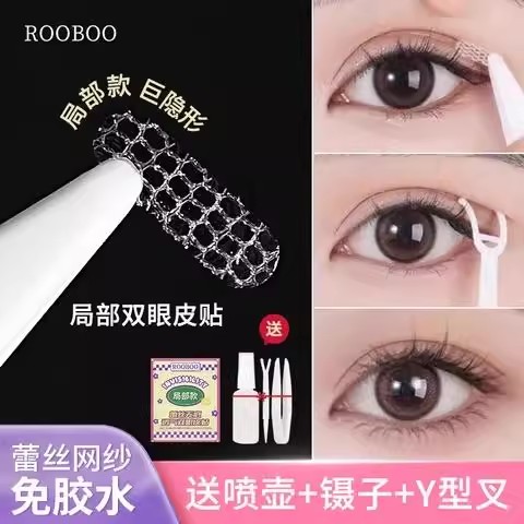 局部雙眼皮貼女蕾絲超隱形自然無痕透氣內雙腫泡眼專用遇水即粘