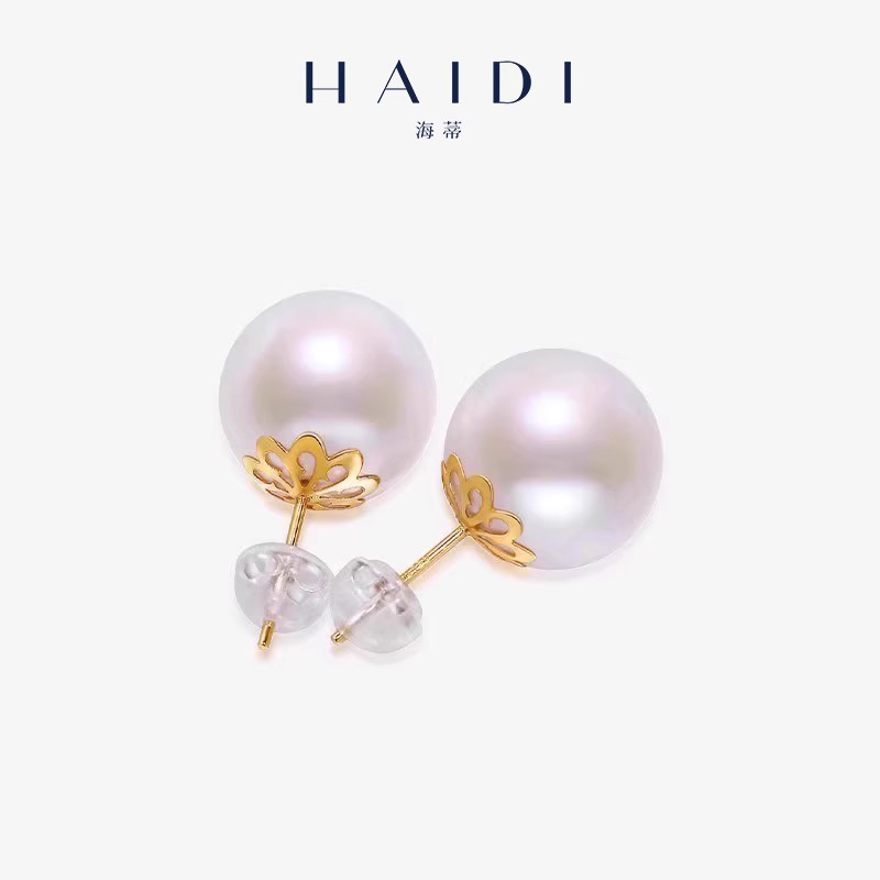 海蒂珠寶 華美 經典大顆粒13-14mm淡水珍珠耳釘 18K金情人節禮物