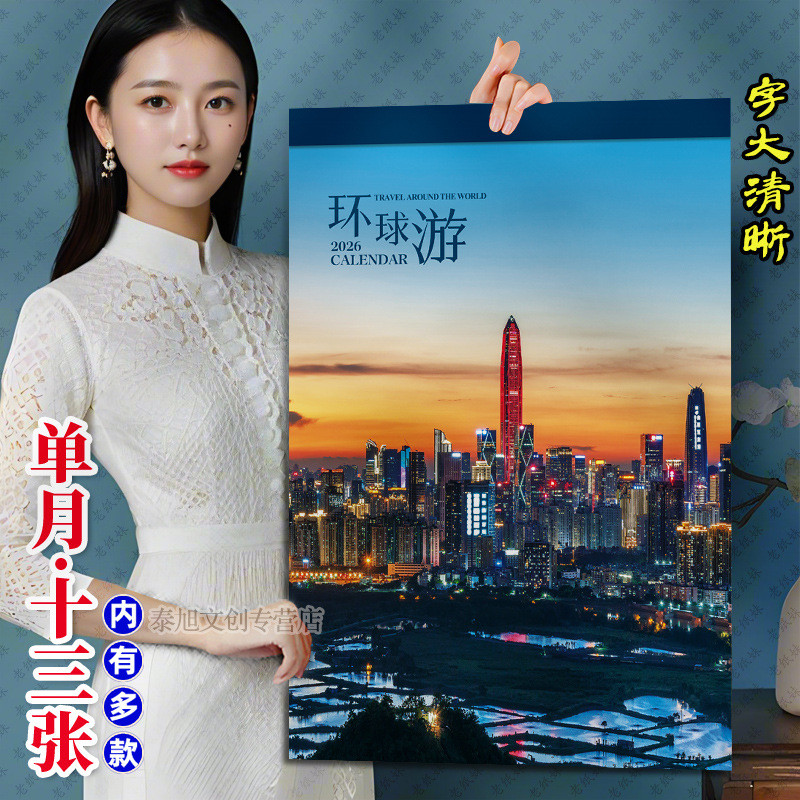 2026馬年新款13張掛歷大號掛墻式家用風景山水月歷廣告LOGO