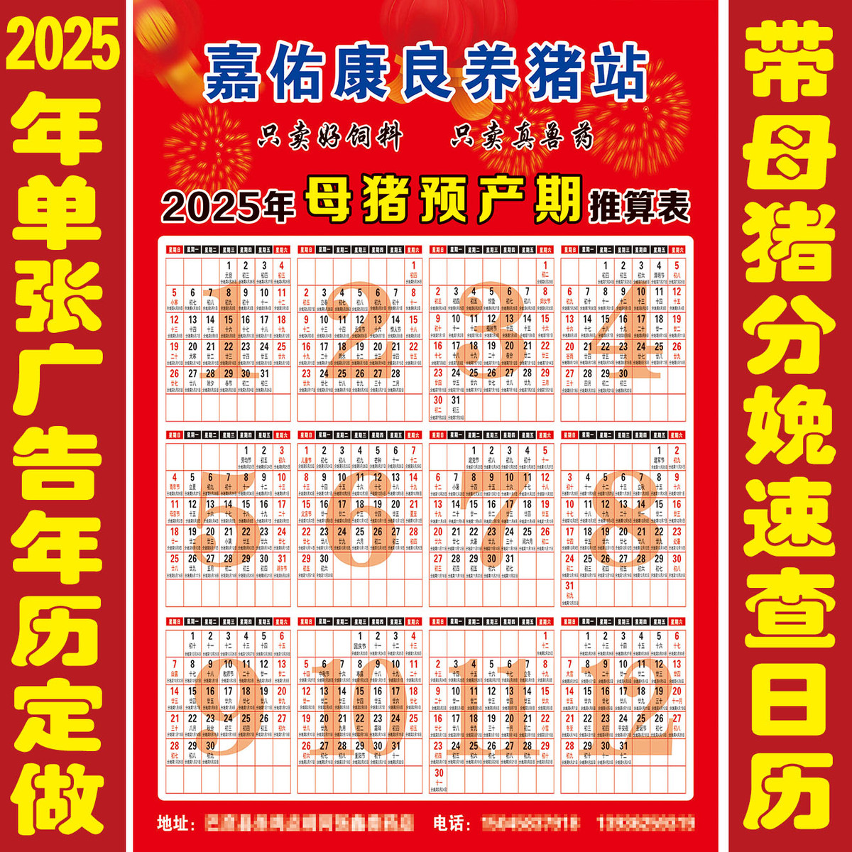 2025蛇年單張掛歷定制母豬速查表母牛推算表掛歷帶母豬分娩日歷