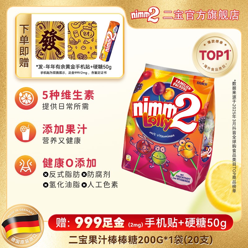 贈金貼+硬糖nimm2二寶棒棒糖水果糖果含VC兒童零食200g-Z