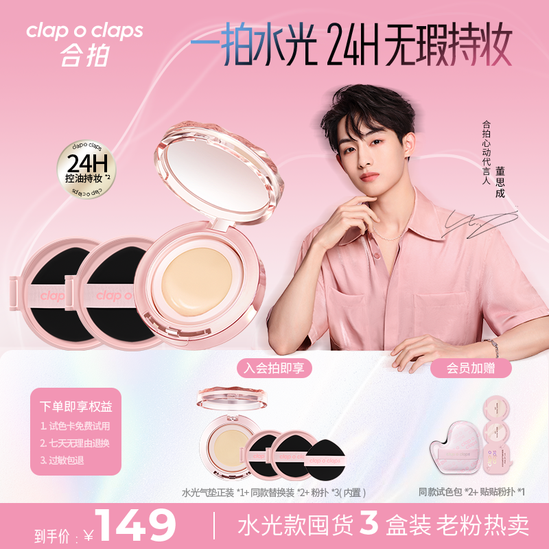 【董思成同款】合拍水光氣墊粉底霜高光遮瑕水潤輕薄持妝囤貨裝