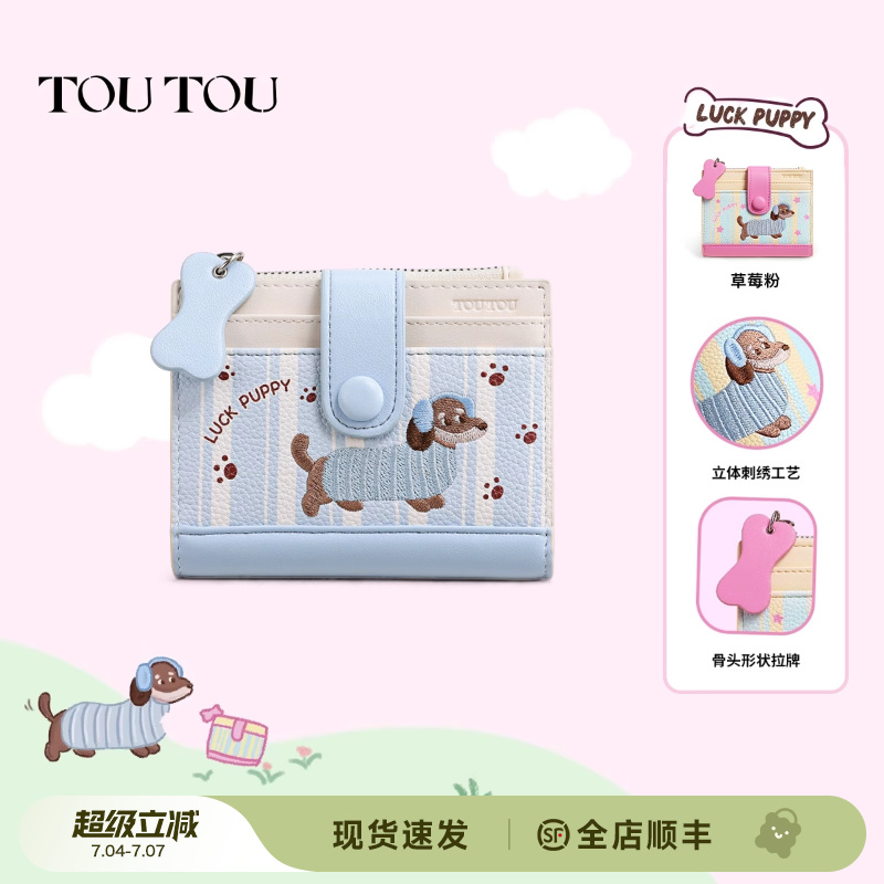 TOUTOU新款臘腸狗錢包大容量短款卡包可愛小零錢包生日兒童禮物女