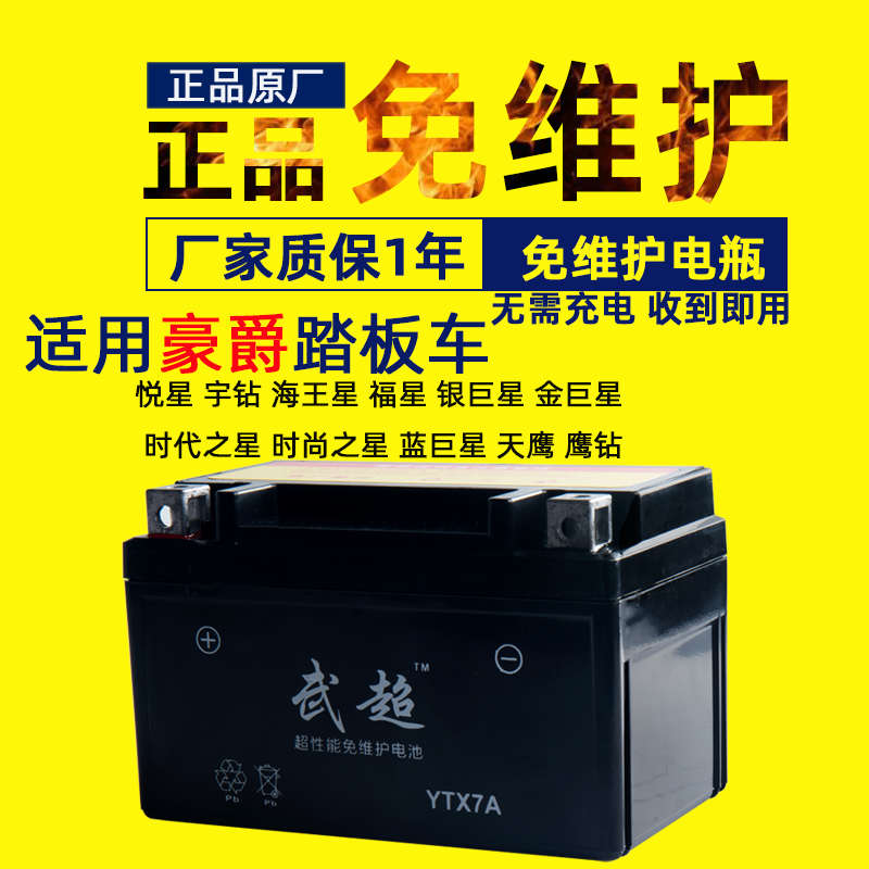 武超豪邁光陽悅星125踏板摩托車助力車通用電瓶免維護蓄電池12V7A