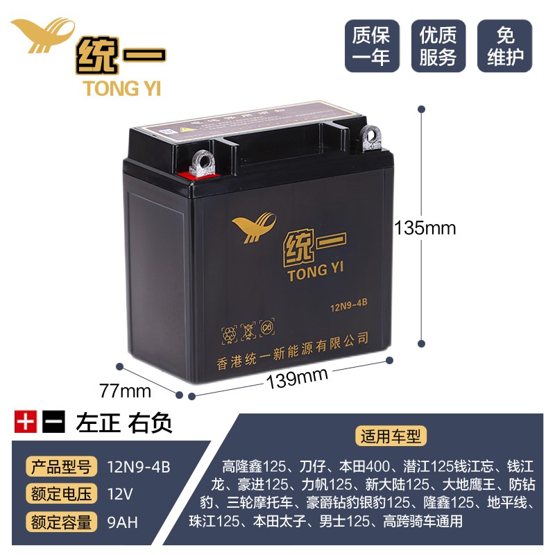 裕祥摩托車電池12V9A左負右正KPT200/GPR200通用12N9-3B干蓄電池