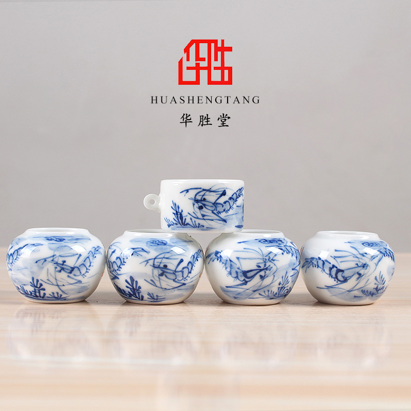 華勝堂 景德鎮手青花蝦趣圖紅子缸水鳥杯鳥食罐 鳥籠配件