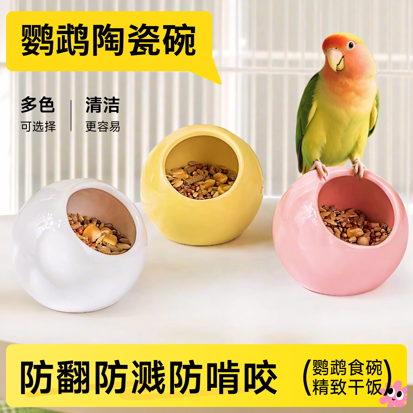 鸚鵡食盒防濺陶瓷喂食器小鳥食杯玄鳳小雞防撒防甩防打翻喂鳥神器