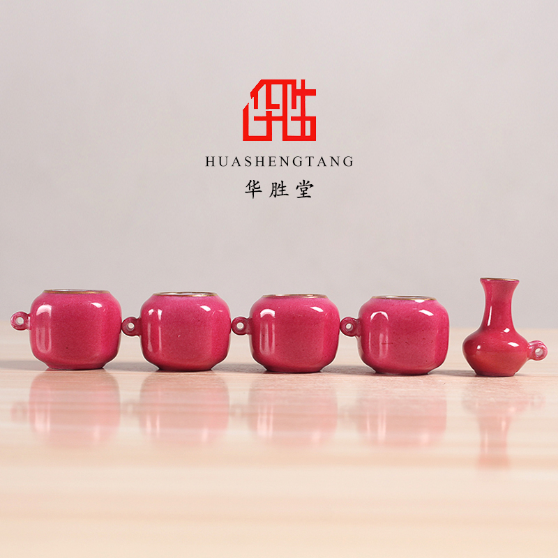華勝堂 景德鎮仿古釉胭脂水繡眼杯鳥食罐小鳥杯五件套 鳥籠配件