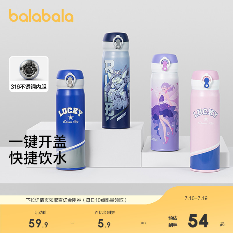 巴拉巴拉兒童保溫杯男女童水壺316L學生上學專用直飲水杯潮流時尚