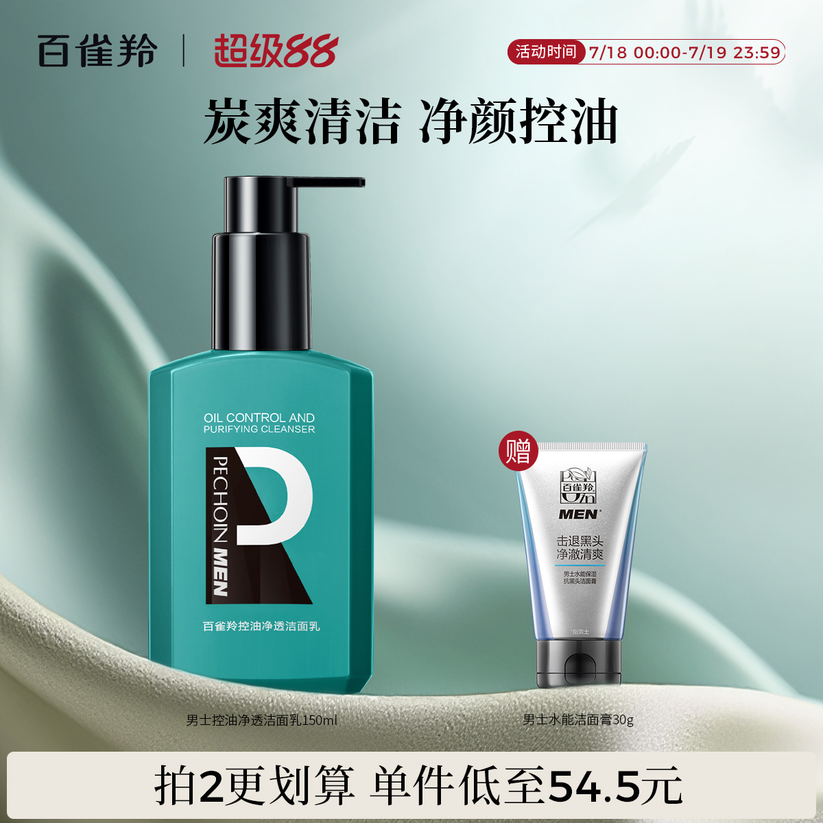 百雀羚控油凈透洗面奶150ml活碳潔面乳男士專用凈顏控油