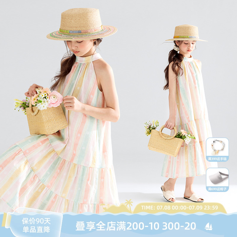笛莎官方童裝女童裙子夏季新款大童女孩兒童洋氣無袖優雅風連衣裙