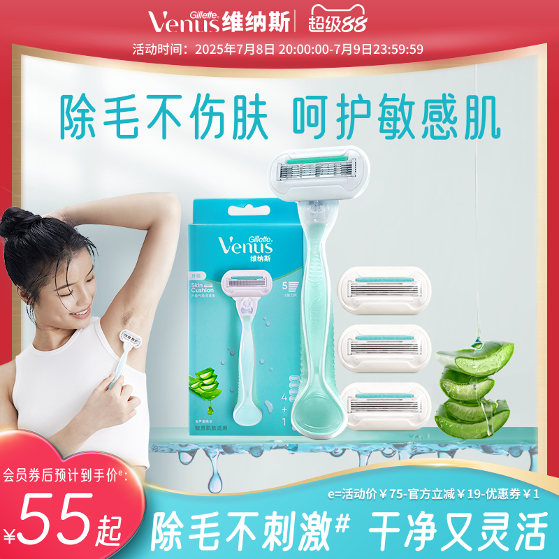 吉列venus維納斯女士剃毛刀敏感肌蘆薈刮毛刀女士便攜脫毛刀手動