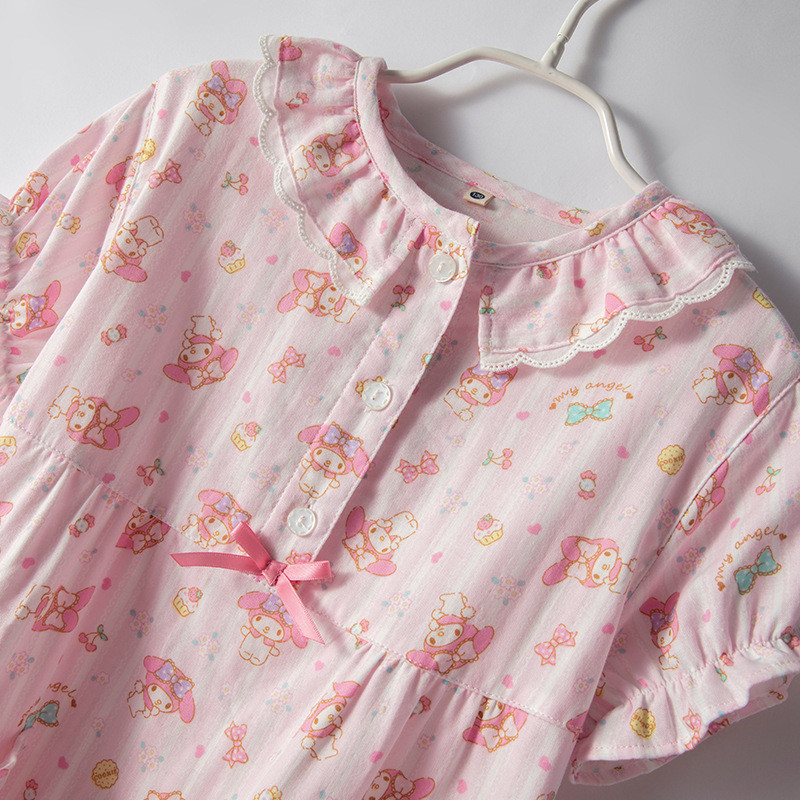 春夏純棉雙層紗布可愛女童短袖睡裙新款家居服批發一件代發