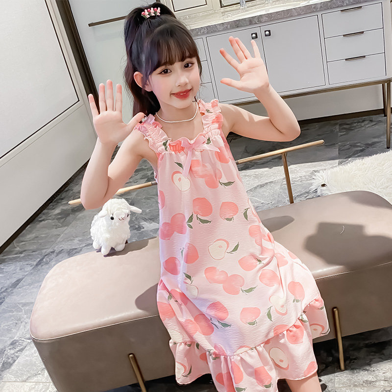 小女孩睡裙夏季新款吊帶女童睡裙寬松中大童睡裙外穿兒童睡衣裙子