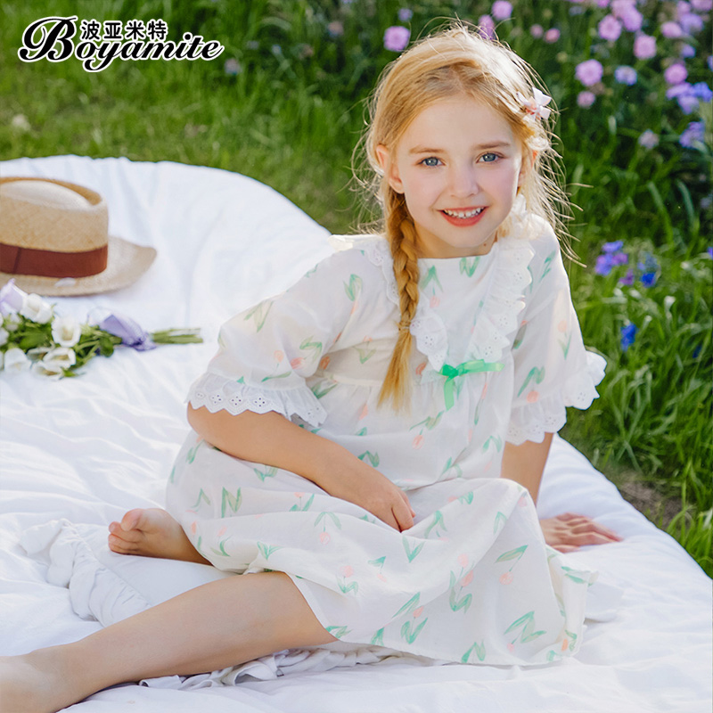阿寶托比女童家居服睡裙兒童純棉莫代爾中大童夏季薄款短袖睡衣