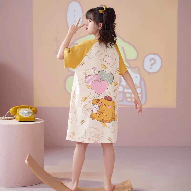 女大童睡裙夏季短袖薄款可愛氣球布丁狗小女孩夏天U空調睡衣裙套