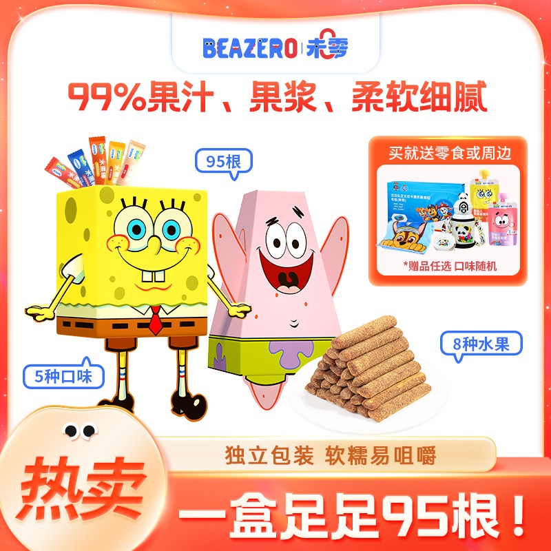 爆款必拍未零95根水果棒禮盒237.5g水果條海綿寶寶