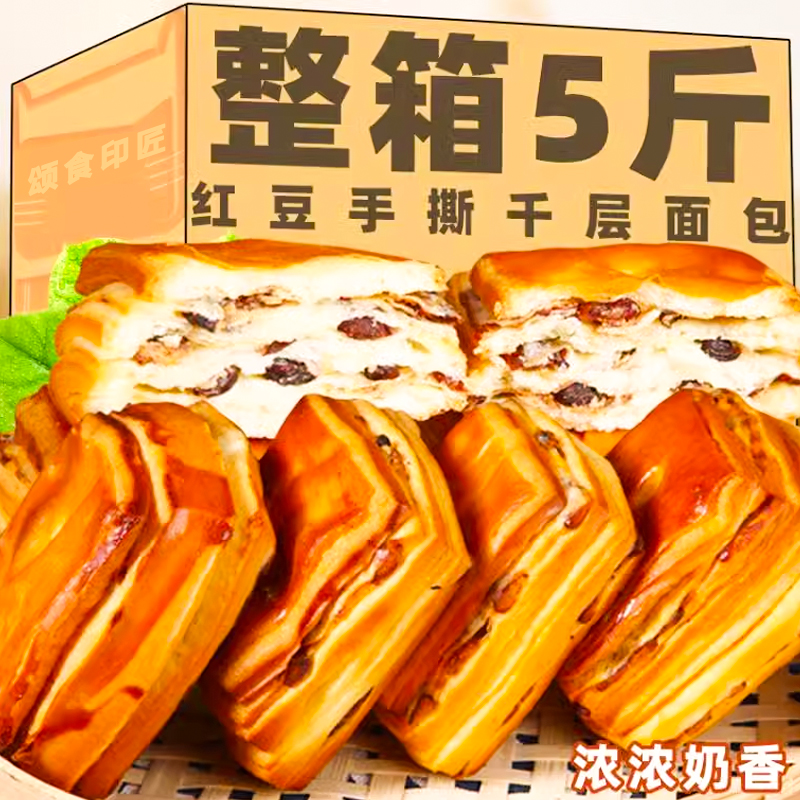 速發紅豆手撕面包整箱早餐充饑夜宵好吃的糕點心辦公室小吃休閑零