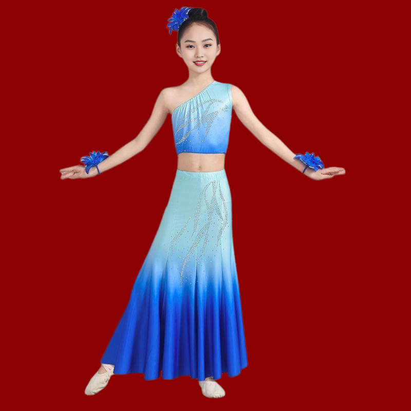傣族舞蹈演出裙子女半身包臀長裙漸變藝考培訓練習裙民族表演服飾
