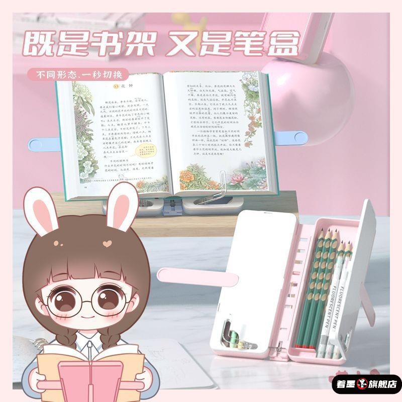 喵小兔新款閱讀架筆盒多功能文具盒看書支架讀書架兩用兒童學生網紅鉛筆盒女孩男童黑科技創意書夾桌面神器袋