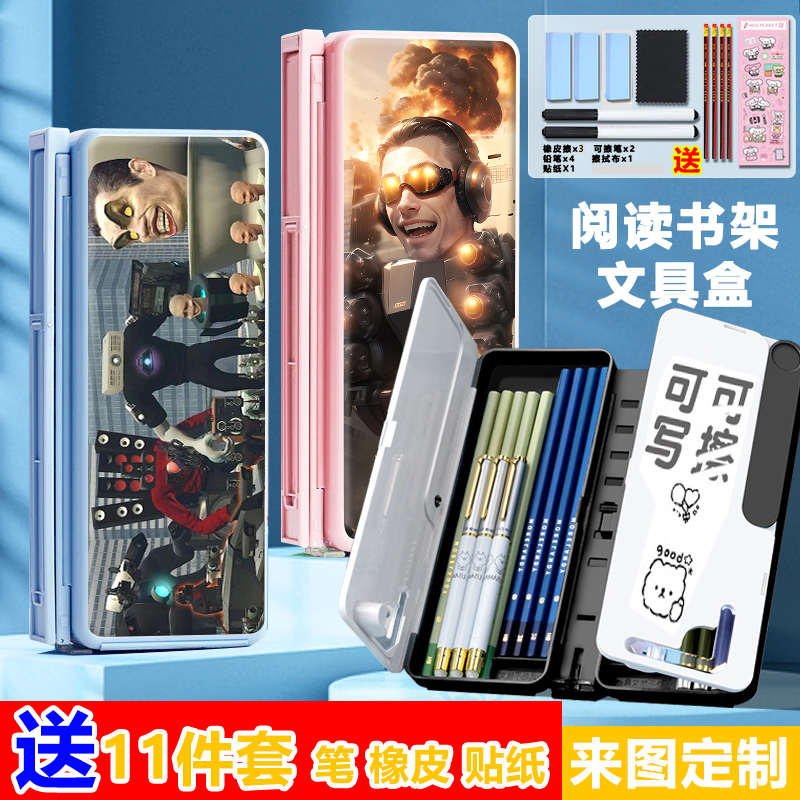 泰坦監控人馬桶人閱讀書架筆盒多功能文具盒男生雙層看書支架學生