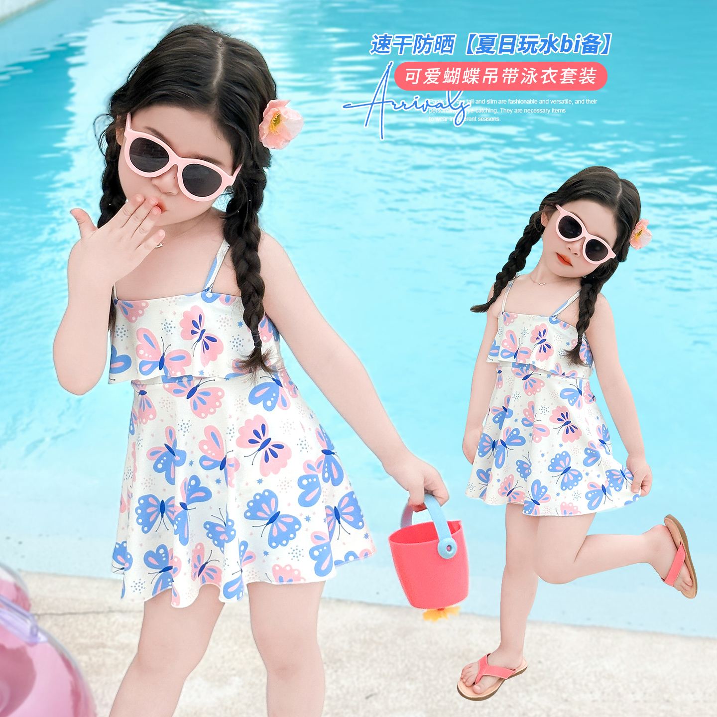 女童吊帶裙式泳衣夏季新款潛水衣玩水衣服海邊度假游泳服女孩泳裝