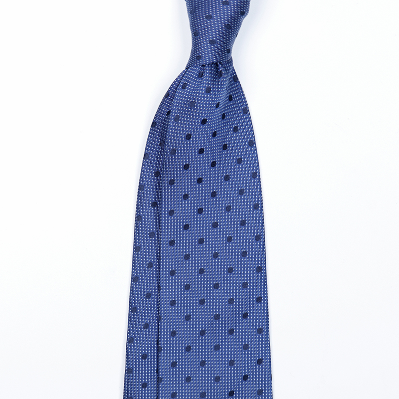 ilLupo 銀藍/深棕 規則印花 手工半內襯三褶意式真絲領帶