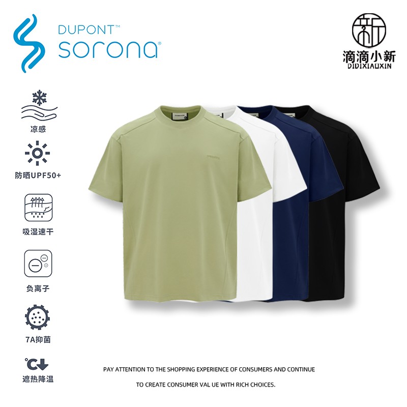 滴滴小新-冰氧涼感索羅娜三本針立裁刺繡短袖T恤情侶夏季男Z2991