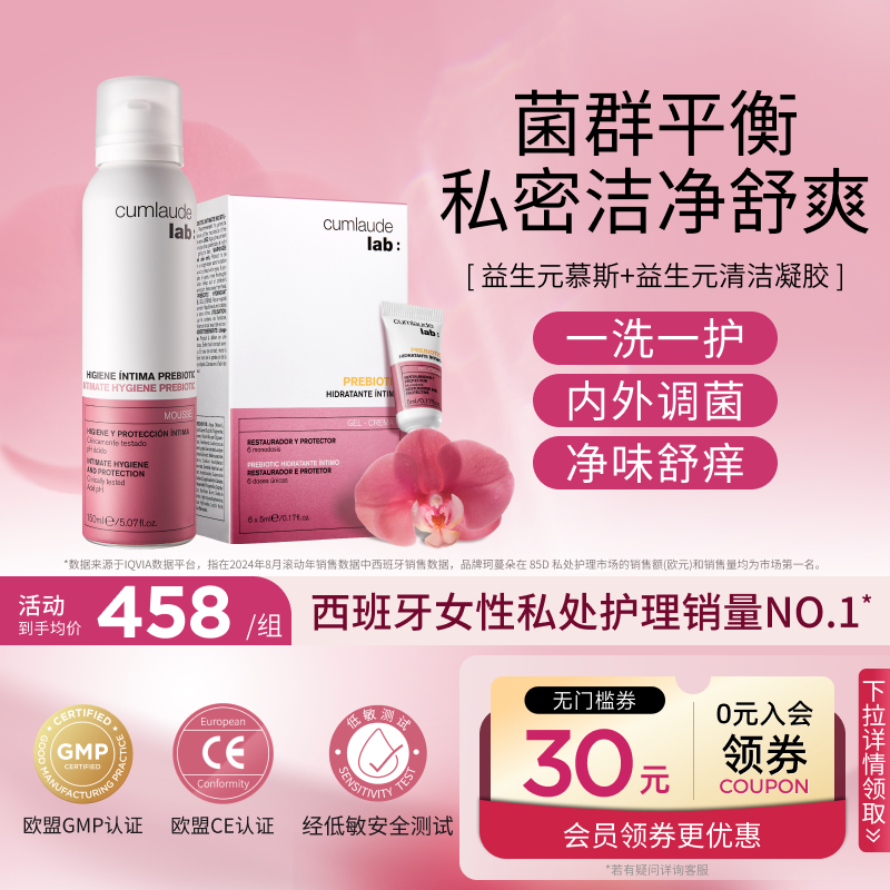 【 私密平衡菌群免疫力套裝】珂蔓朵益生元清潔凝膠+清潔慕斯